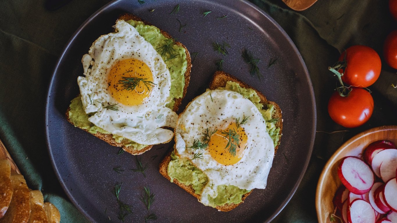 До страви з яєць слід додати овочі і шматок цільнозернового хліба або трохи каші. Можна зробити тост з цільнозернового хліба з скибочками авокадо. Авокадо — лідер за вмістом корисних рослинних жирів серед фруктів і овочів. Такий варіант сніданку набагато ситніший і кращий, ніж солодка дріжджова випічка.⠀