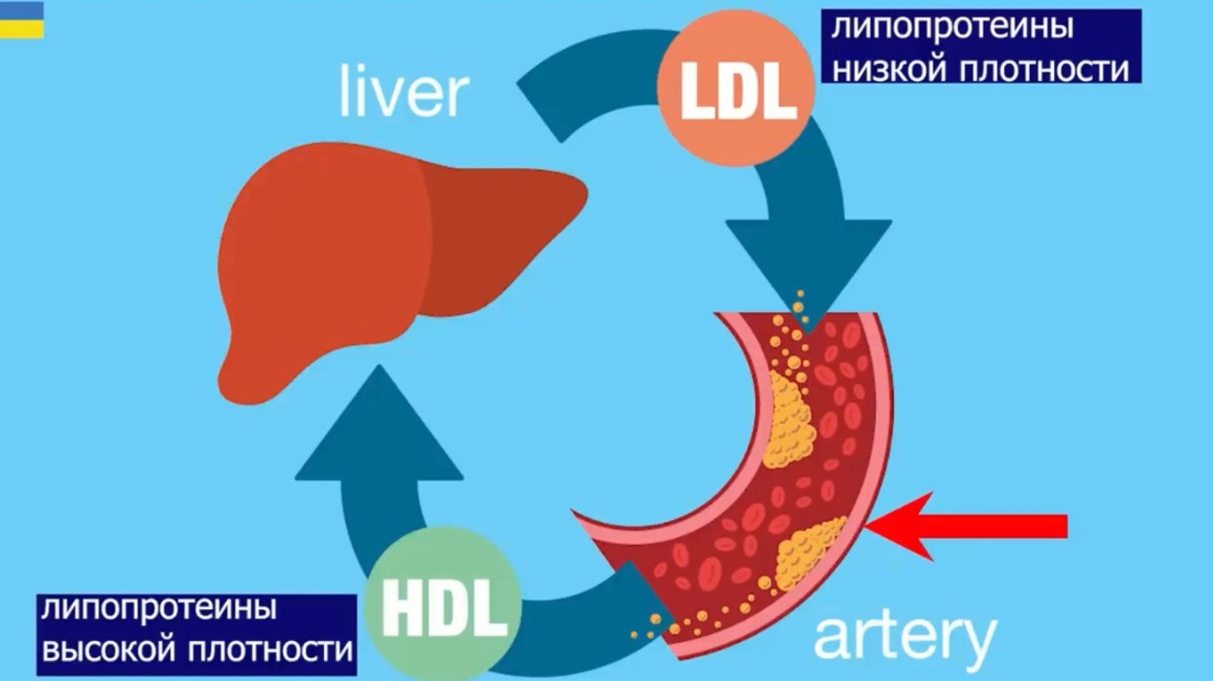 "Спрощено кажучи, є хороші ліпопротеїни високої густини, і погані ліпопротеїни – з низькою щільністю. В обох і цих протеїнів входить холестерин. Ліпопротеїни високої щільності несуть холестерин до органів та тканин для того, щоб вони використовували їх для власних потреб, але коли ліпопротеїнів низької щільності стає дуже багато, у цьому випадку вони закріплюються на внутрішніх стінках органів, викликаючи там запалення, окислення та формування атеросклеротичних бляшок", — сказав лікар.