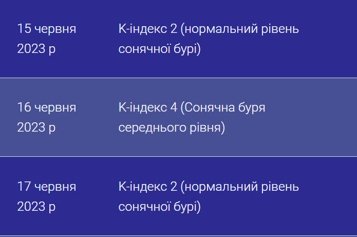 Магнітна буря триватиме один день — 16 червня, а вже 17 червня спостерігається спад сонячної активності.